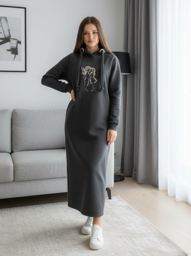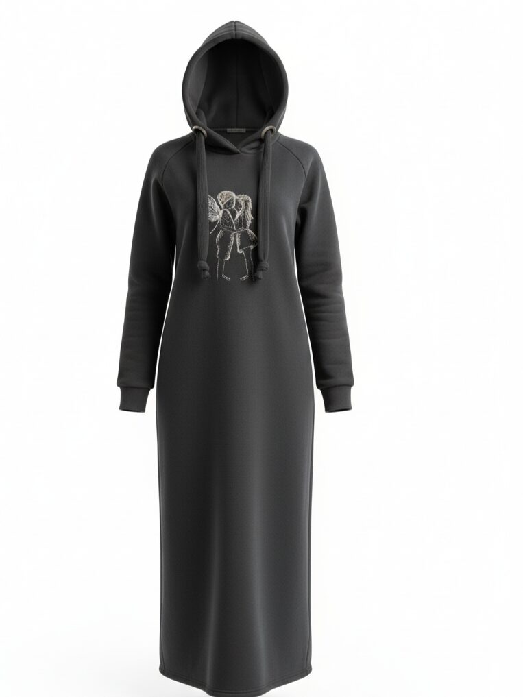 Masintikandis haldjapildiga pikk pusakleit sooja harjatud sisepinna ja kapuutsiga. Suurus XL.