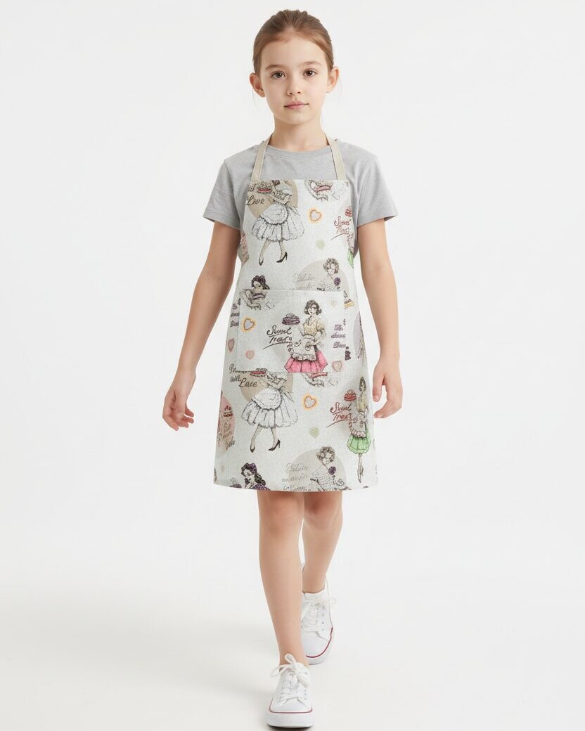 Toekamast lina- ja puuvillasegu materjalist laste põll pikkusega 54cm, kõhupeal oleva tasku ja pandla kinnitusega.