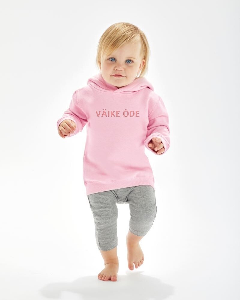DesigRi disainitud tekstiga pusa väikestele. Masintikitud tekst ei kulu ja seda võib triikida. See on mugavalt avara kaelusega pusa, et saaks kergelt üle pea selga tõmmata. Pusal on kahekihiline kapuuts, soe harjatud sisepind, soonikkoes kätised varrukatel ja alläärel. Tootja Babybugz.