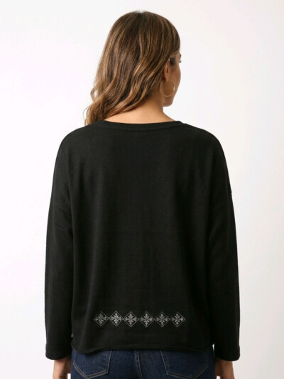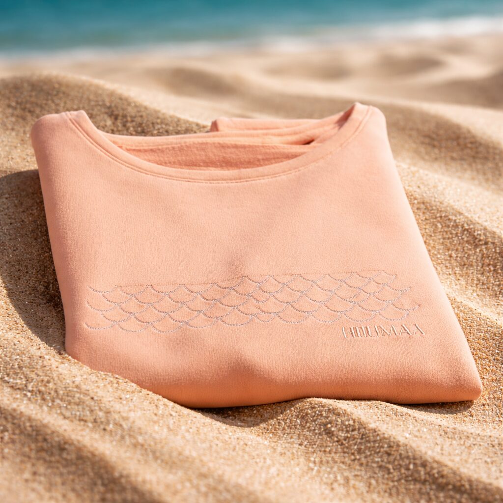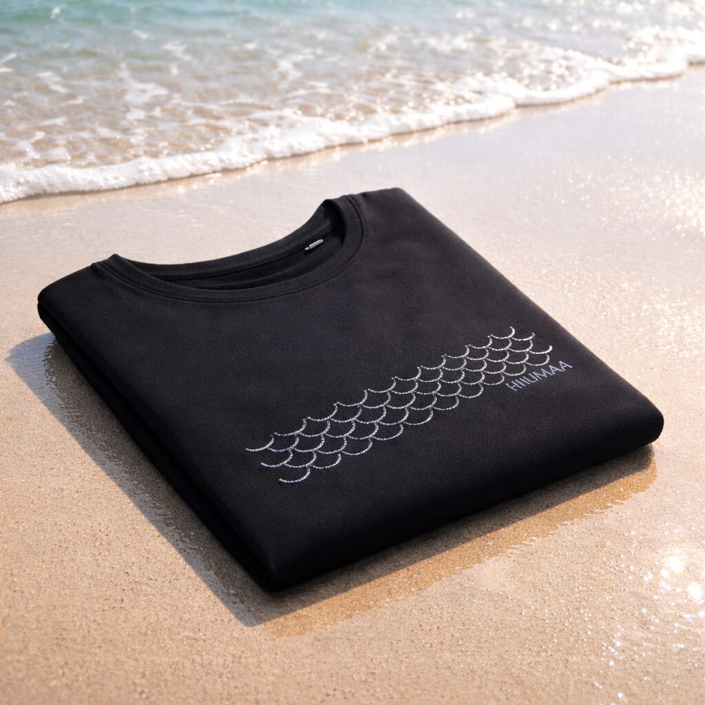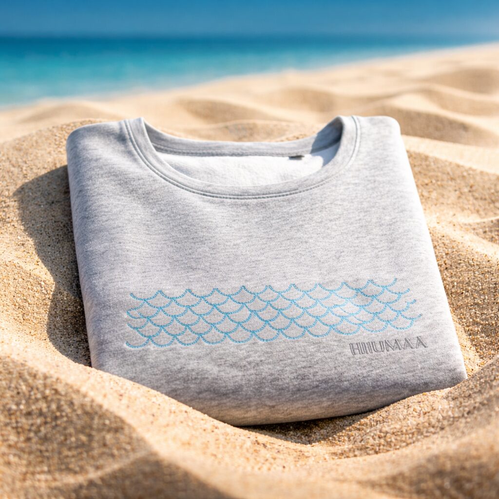 Hiiumaa süboolikaga pusa, mugav avaralõikeline, aasalise sisepinna ja poolviimistletud kergelt rulluva alläärega.