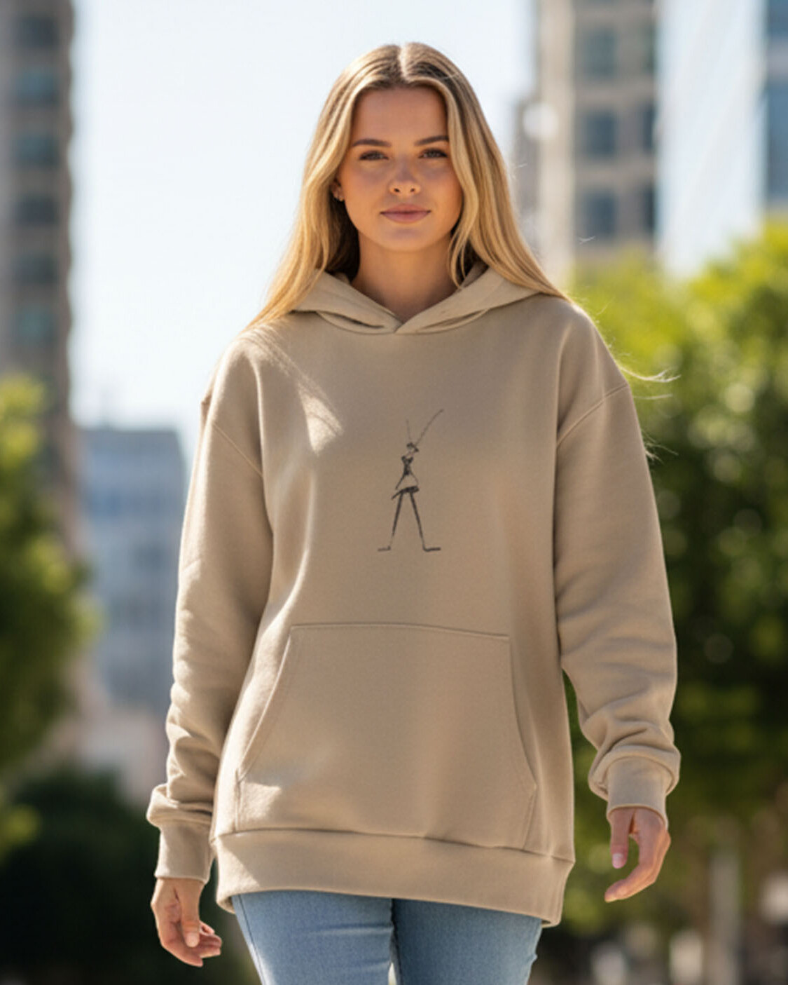 Mõnusalt soe paksem pusa on pehme harjatud sisepinnaga, avaralõikeline (pikendatud õlg), kängurutasku ja kahekihilise kapuutsiga.