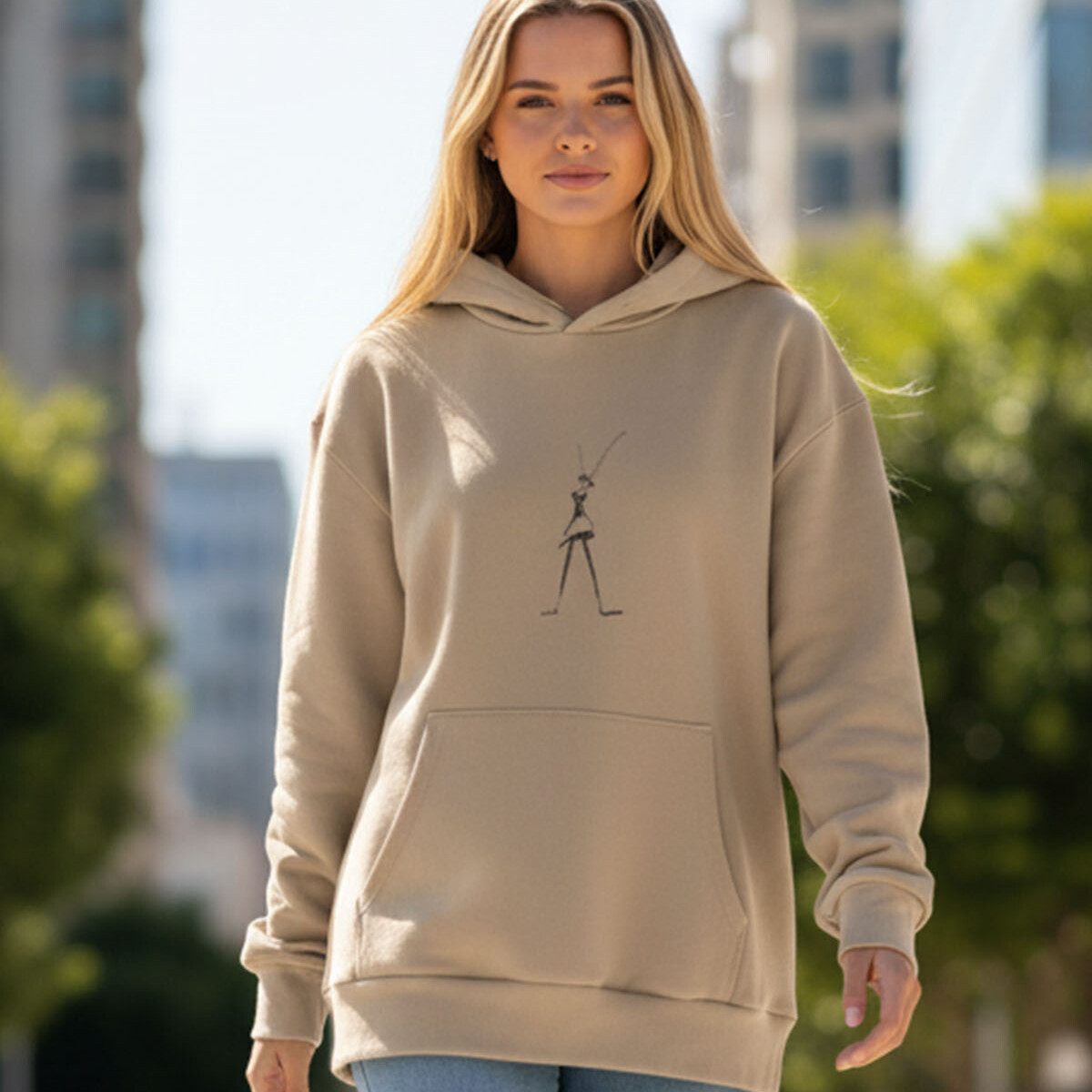 Mõnusalt soe paksem pusa on pehme harjatud sisepinnaga, avaralõikeline (pikendatud õlg), kängurutasku ja kahekihilise kapuutsiga.