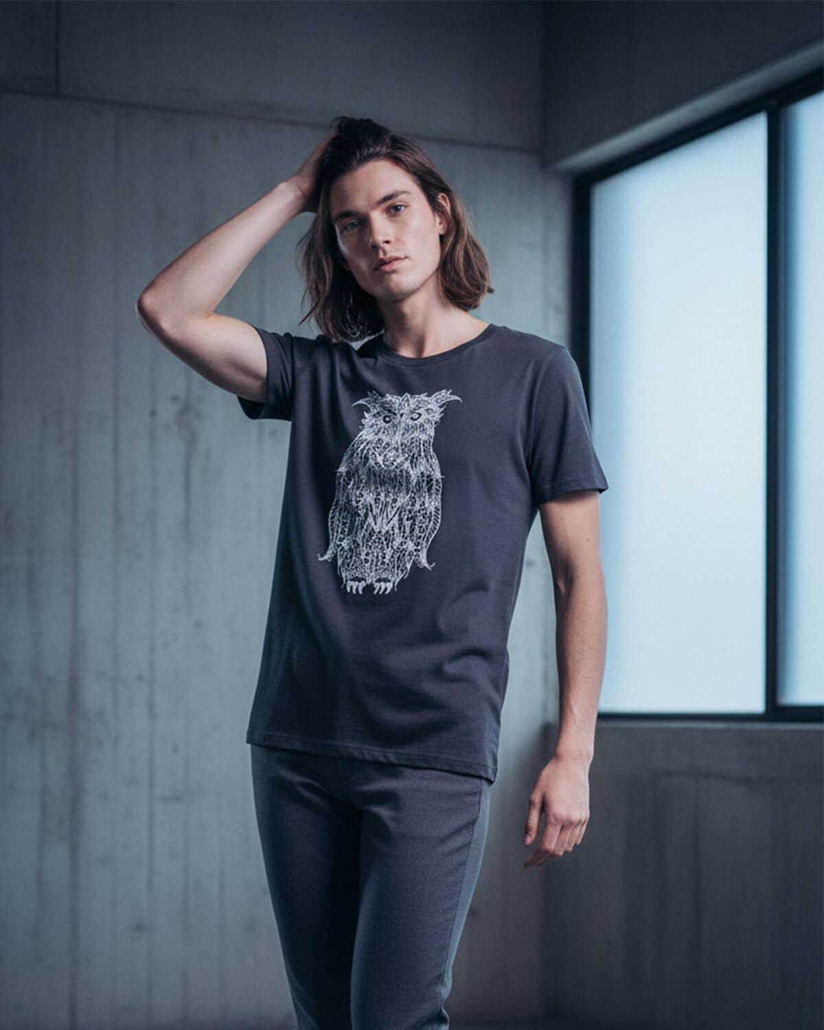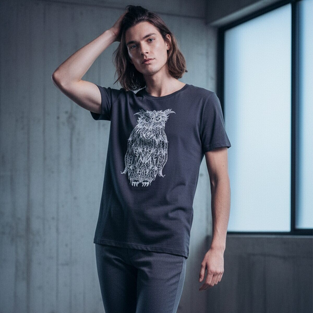 Tumehalli värvi T-särk masintikandis valge kakuga.