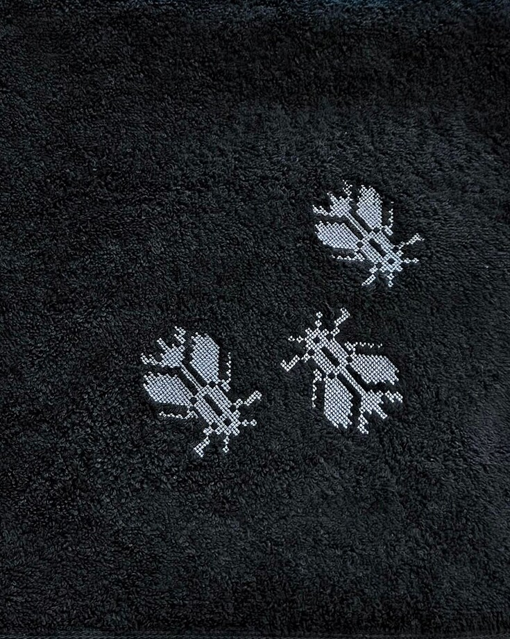 Hiiumaa Hanikatsi kindakirja masintikitud kärbsemustriga saunalina suurusega 70x140cm.