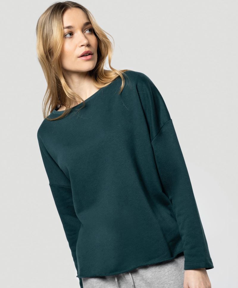 Avaralõikeline, pikendatud õla, aasalise sisepinna ja poolviimistletud kergelt rulluva alläärega õhem mugav pusa tootjalt Kariban.
