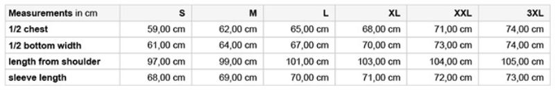 | Toote suurus | S, M, L, XL, XXL, 3XL |