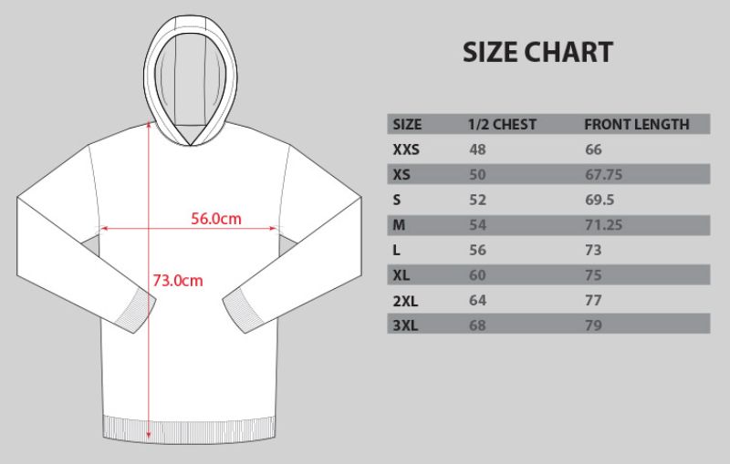 Classic Hood Heavyweight Unisex Hooded Sweater size guide: