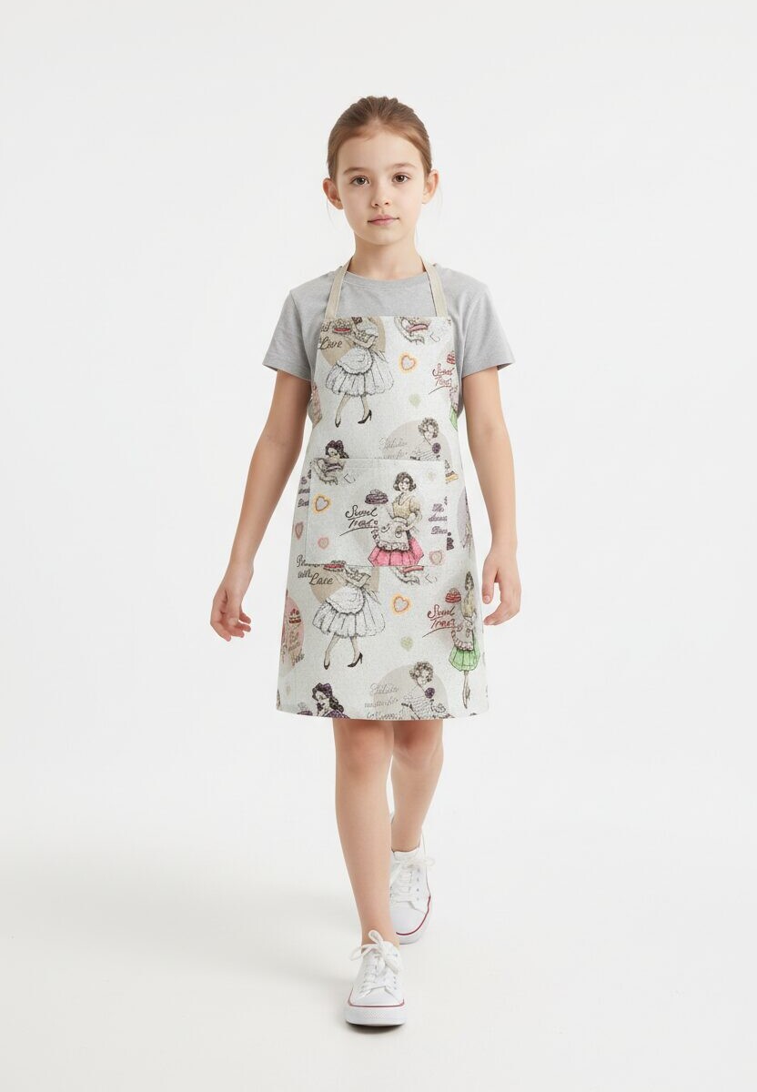 Toekamast lina- ja puuvillasegu materjalist laste põll pikkusega 54cm, kõhupeal oleva tasku ja pandla kinnitusega.