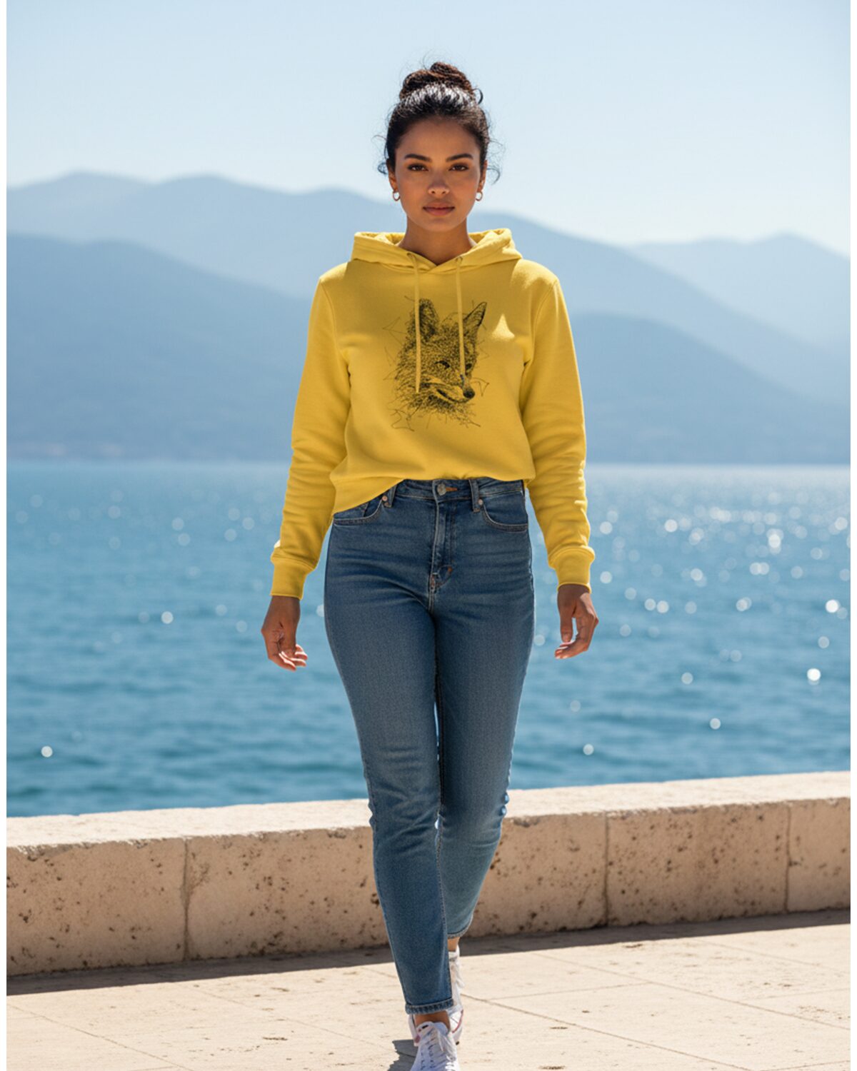Masintikandis rebase pildi, harjatud sisepinna, kahekihilise kapuutsi ja küljeõmblustes olevate sisetaskutega mõnus pusa. Rebase pilt Cyncopia Embroidery Design kollektsioonist. Tikand ei kulu ja seda võib triikida.