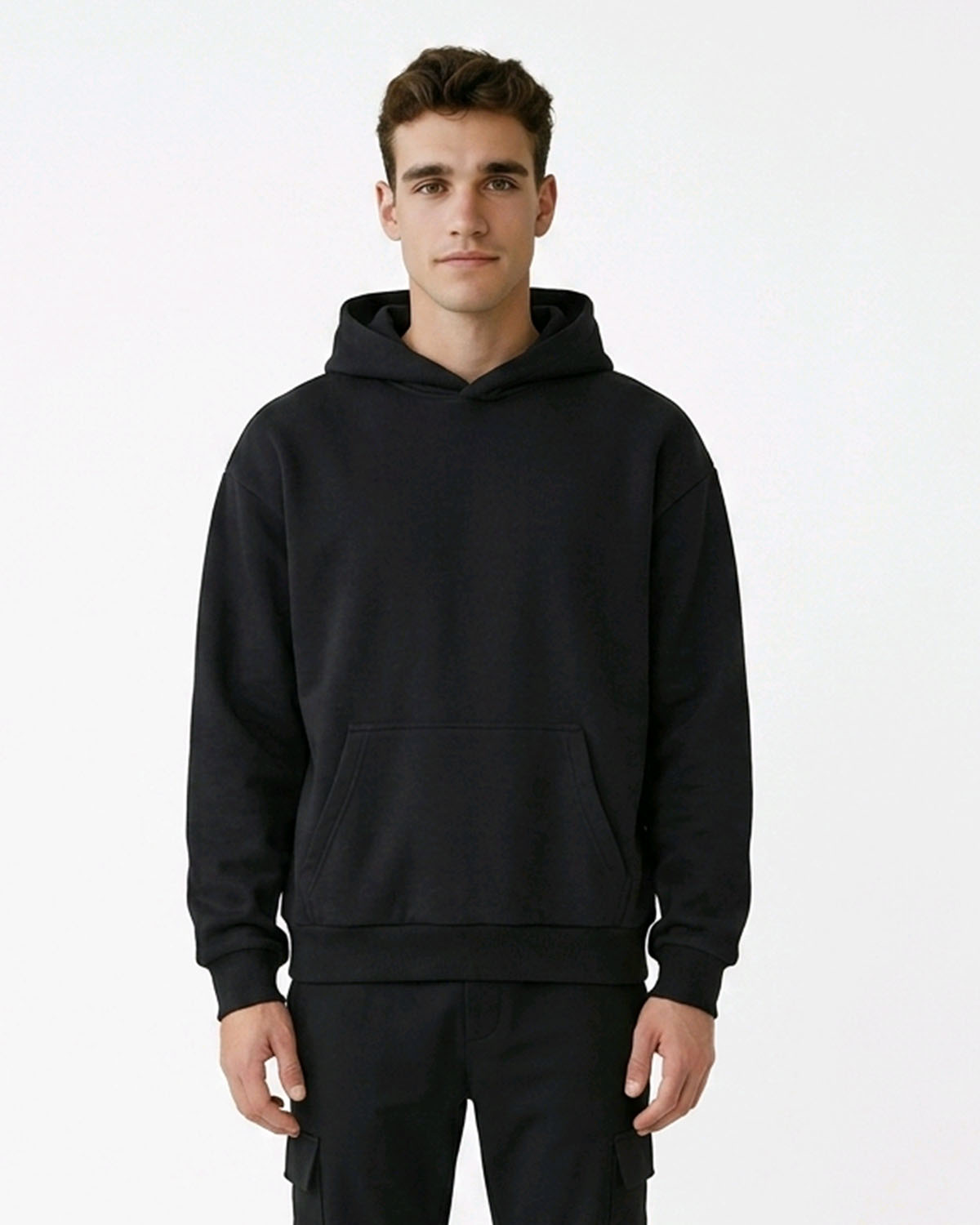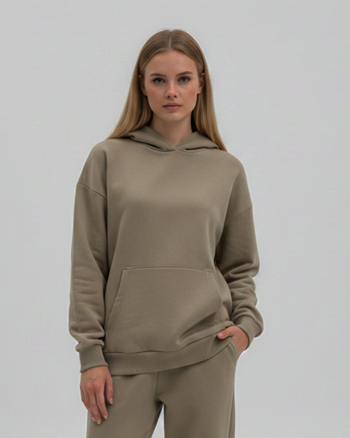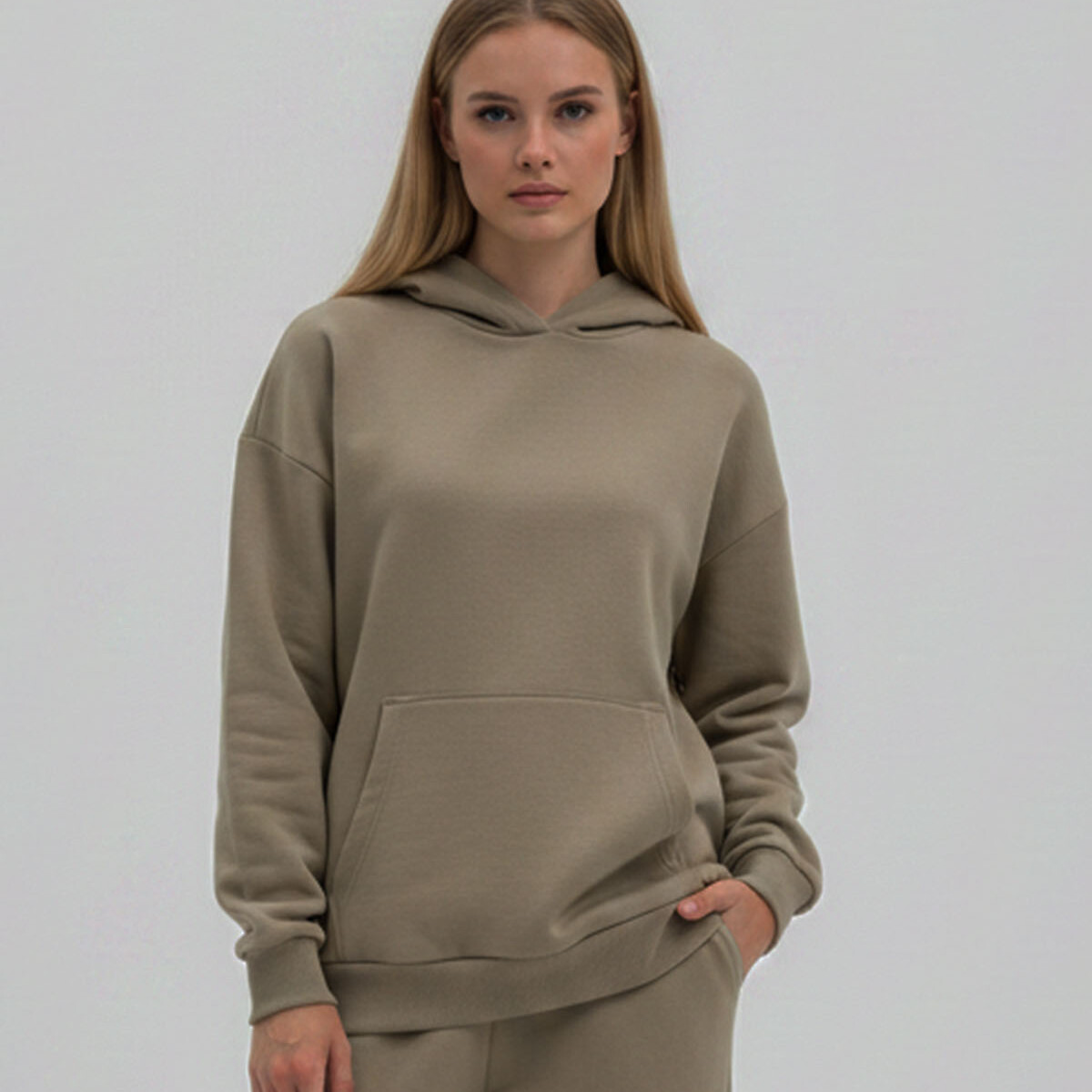 Mõnus pehme pusa, mis ei kaota oma pehmust isegi pärast pesu. Avara lõike ja pikendatud õlaga lohvakas pusa millel on kängurutasku ning ilma paelteta kahekihiline kapuuts.