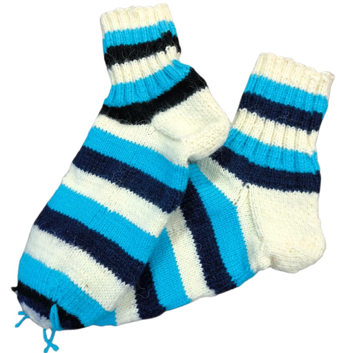Suure hoole ja armastusega käsitsi kootud triibulised villased sokid, talla pikkusega 23cm ja säär kanna alt mõõdetuna 17cm.