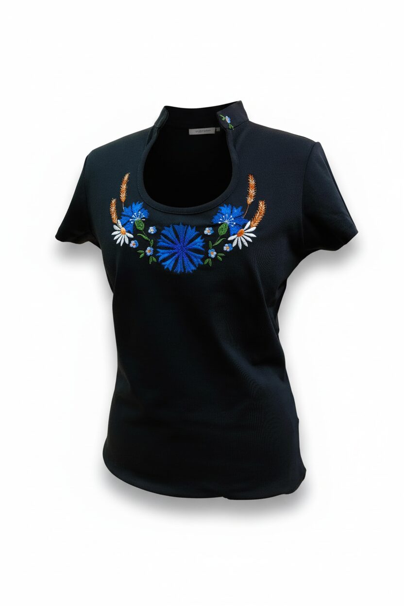 Rahvusliku lillemotiivi ja püstkraega naiselik pluus