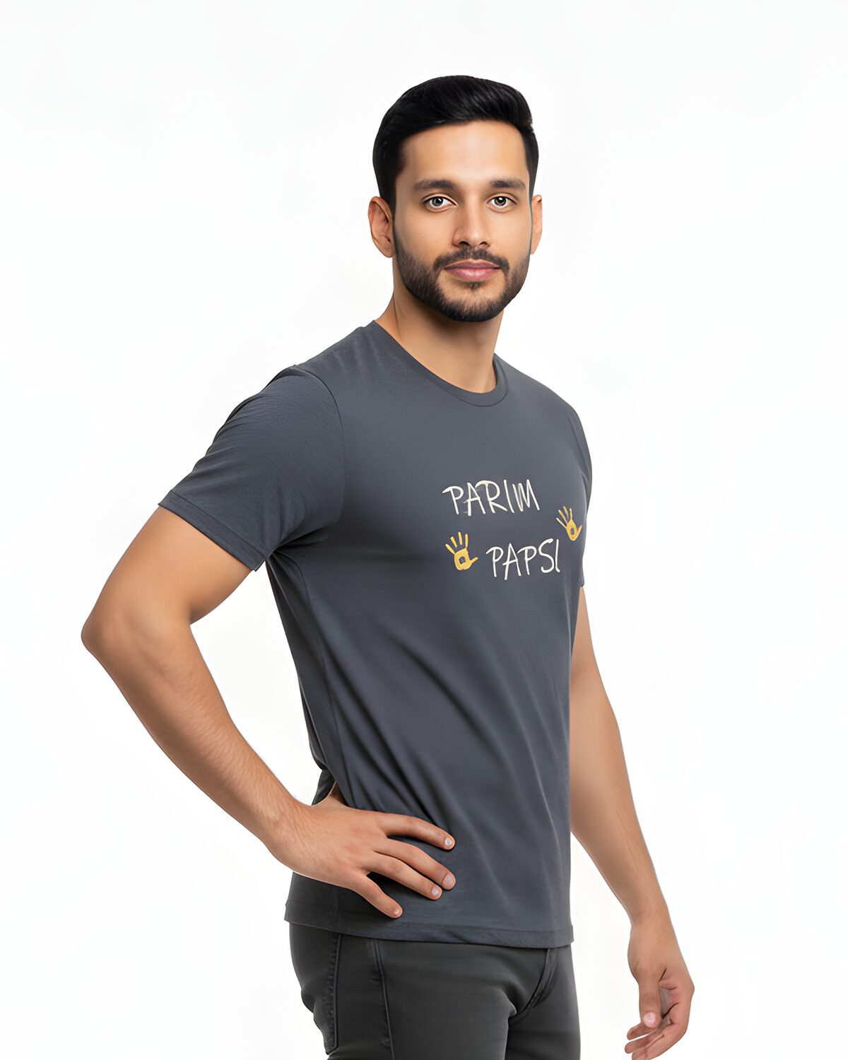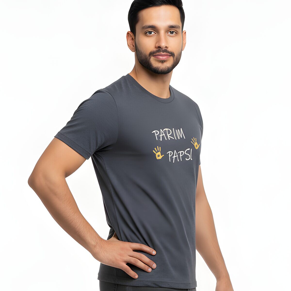 DesigRi disainiga T-särk isadele ja vanaisadele omal soovil laste kätearvu ja tunnustava sõnumiga. Tikitud tekst särgil ei kulu ja seda võib triikida.