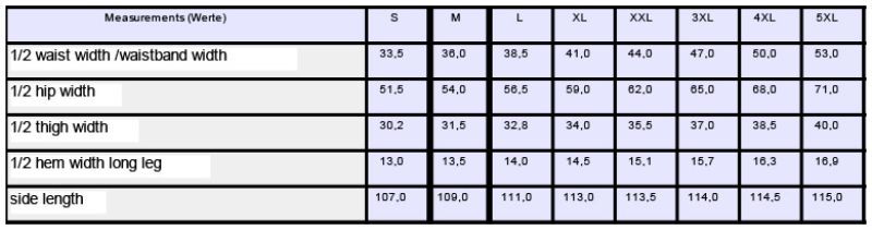 Paksud dressipüksid suuruste juhised: